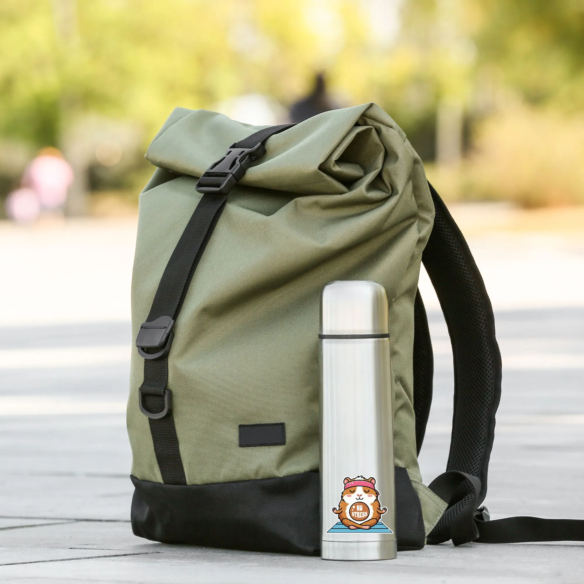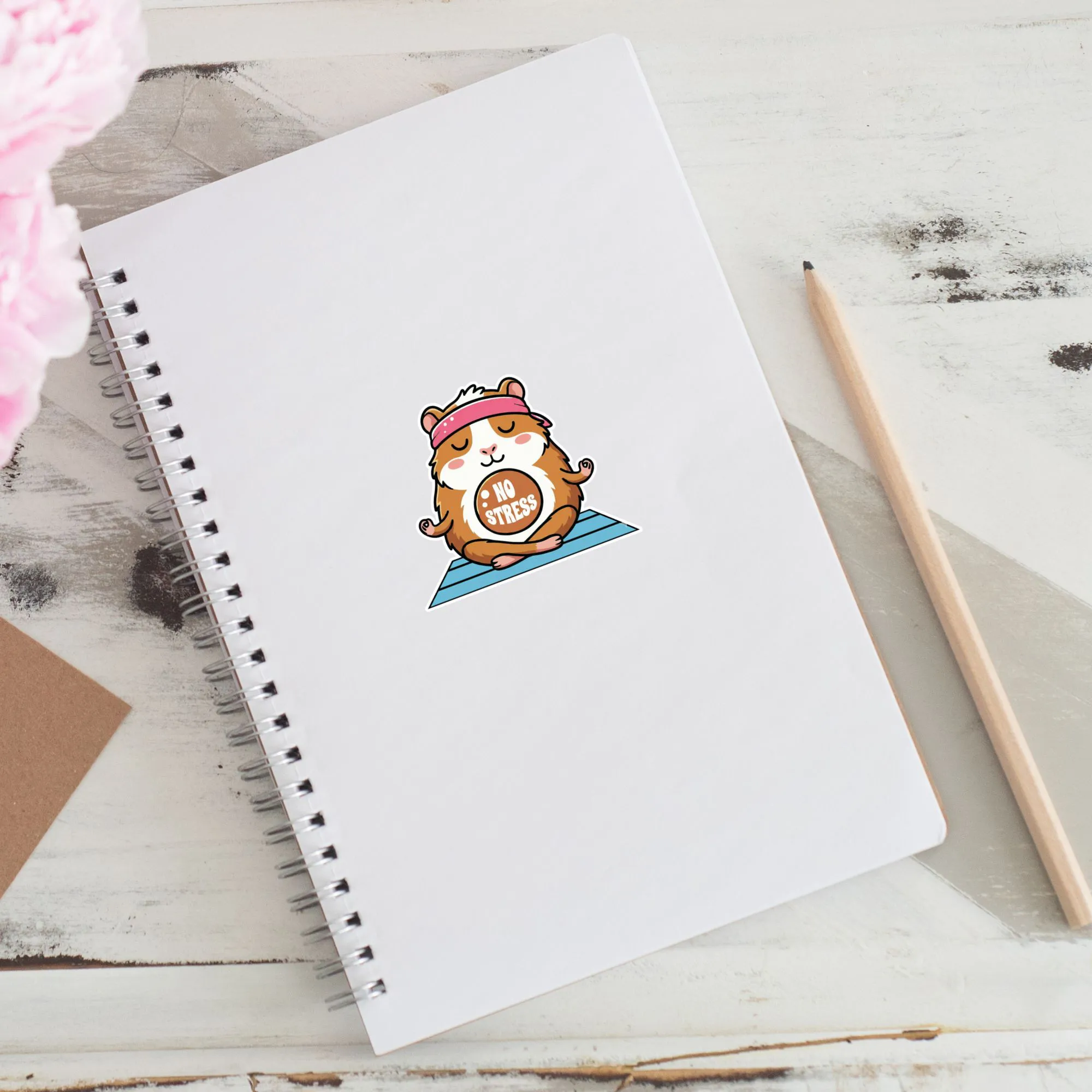 Bringen Sie Gelassenheit in Ihren Alltag mit diesem entzückenden "No Stress" Meerschweinchen Sticker. Dieser hochwertige Vinyl-Aufkleber zeigt ein meditierendes Meerschweinchen in Yoga-Pose, komplett mit Stirnband und "No Stress"-Schild. Ideal als kleine Erinnerung zum Durchatmen für gestresste Schüler, Studenten oder Kollegen.