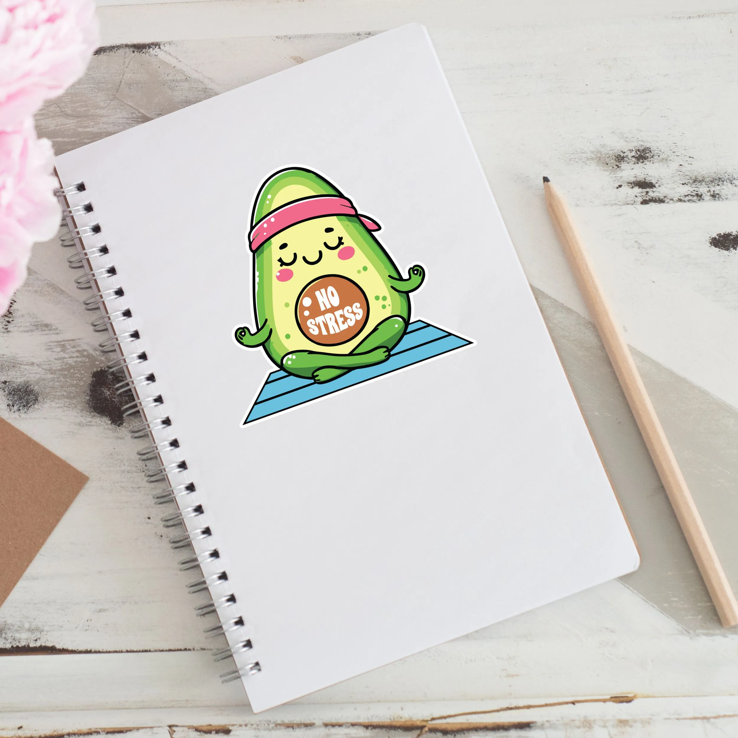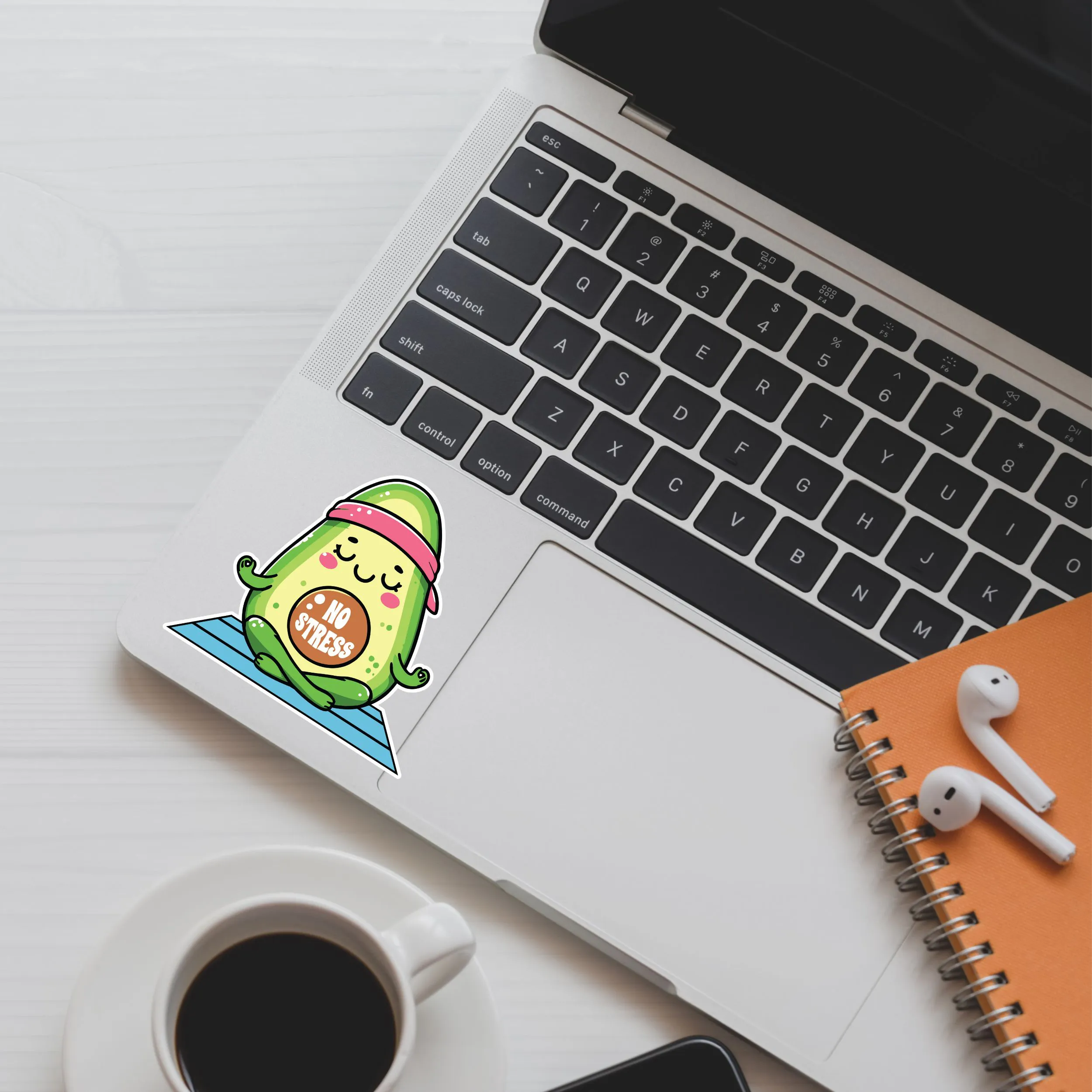 Motiv: Meditierende Avocado mit Stirnband & "NO STRESS" Schriftzug