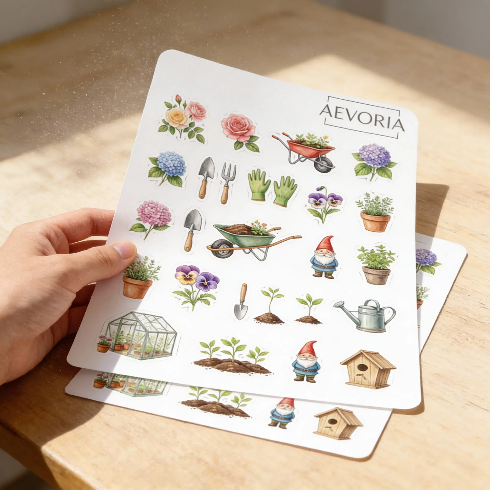 Verleihen Sie Ihrem "Green Journal" oder Planer blühendes Leben mit diesem detailreichen Garten-Stickerbogen der Marke AEVORIA. Perfekt für Hobbygärtner, die ihre Aussaat dokumentieren oder den Cottagecore-Stil lieben.