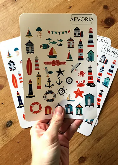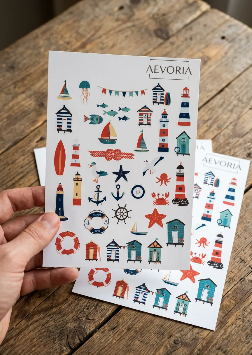 Holen Sie sich das unbeschwerte Strandgefühl nach Hause mit diesem farbenfrohen Maritimen Stickerbogen der Marke AEVORIA. Dieses Set versprüht echtes Nordsee- und Ostsee-Feeling und ist ideal für Travel Journals, Urlaubstagebücher oder maritime Dekorationen im Badezimmer.