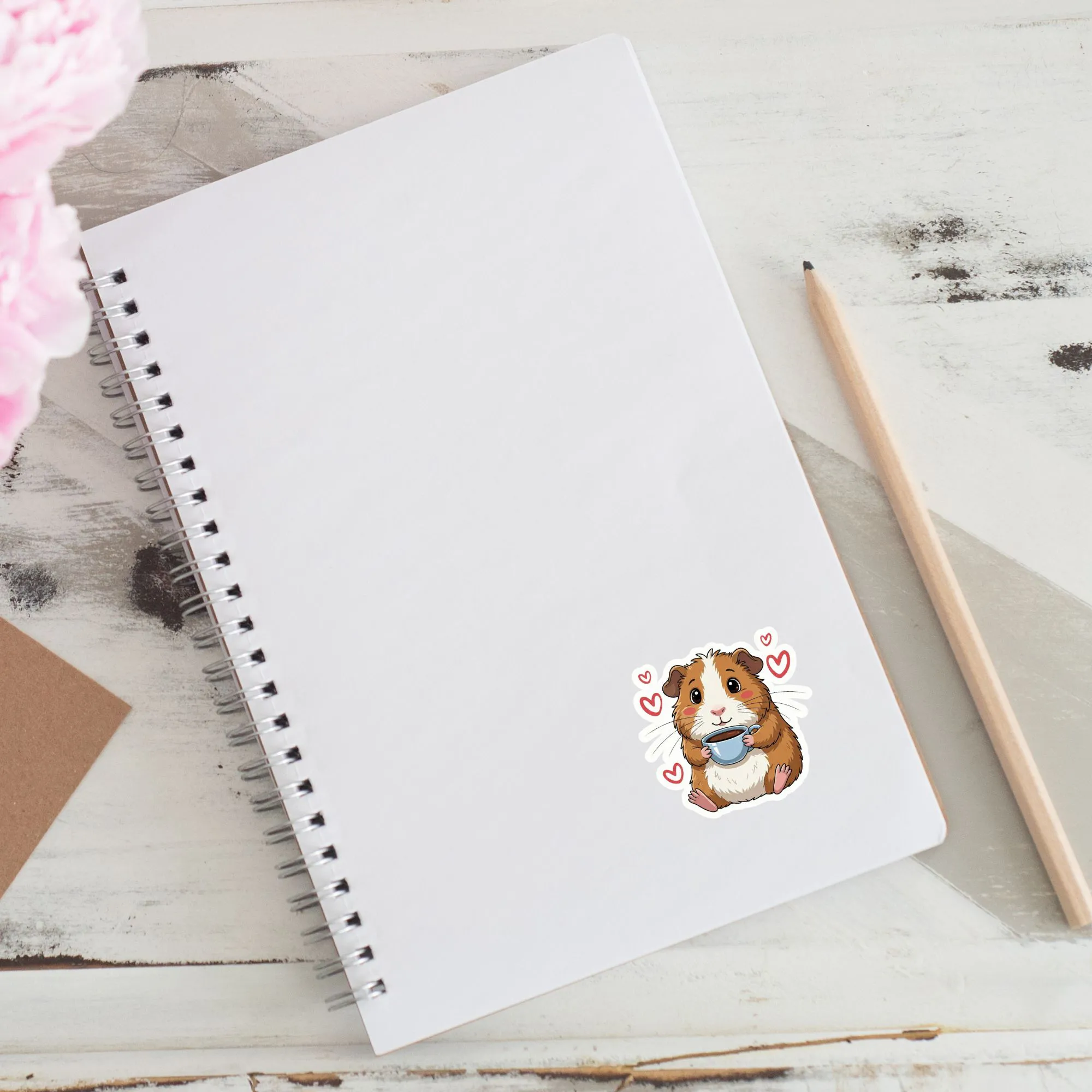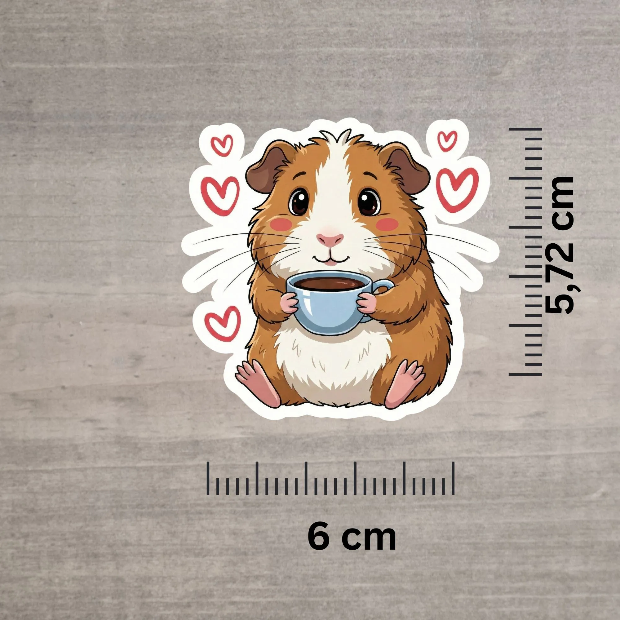 Dieser unwiderstehlich süße Meerschweinchen-Sticker ist der perfekte Begleiter für alle Kaffeeliebhaber, Nager-Fans und alle, die den Morgen erst nach der ersten Tasse Kaffee so richtig beginnen können. Das kleine Meerschweinchen hält seine Tasse fest in den Pfoten und ist umgeben von Herzen – pure "Coffee Love"!