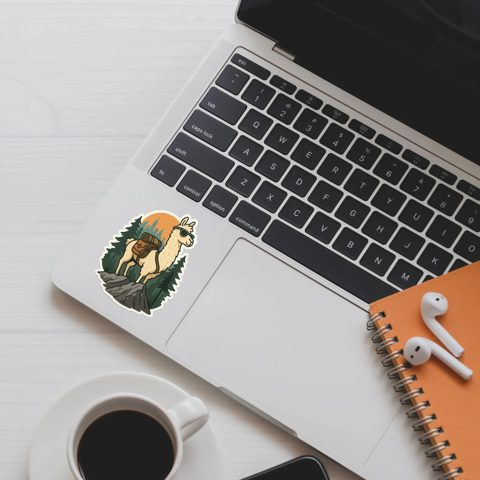 Mit Sonnenbrille auf der Nase und dem Rucksack geschultert, genießt dieses lässige Lama die Aussicht vom Berggipfel. Dieser Sticker ist der perfekte Begleiter für alle Wanderer, Camper, Outdoor-Enthusiasten und jeden, der das Fernweh packt.