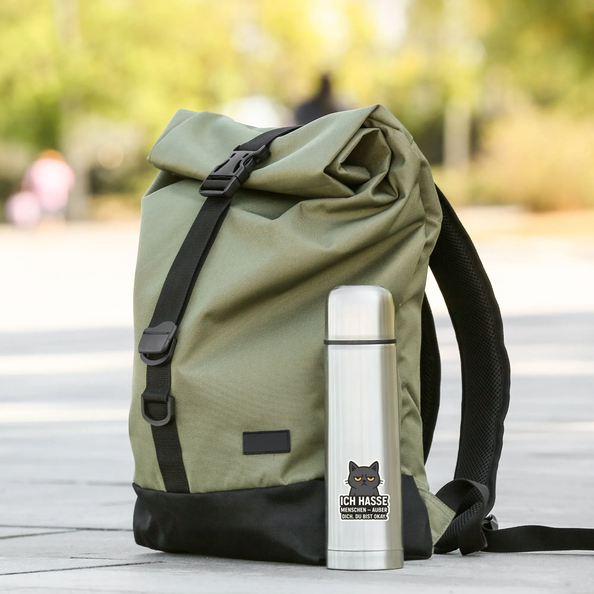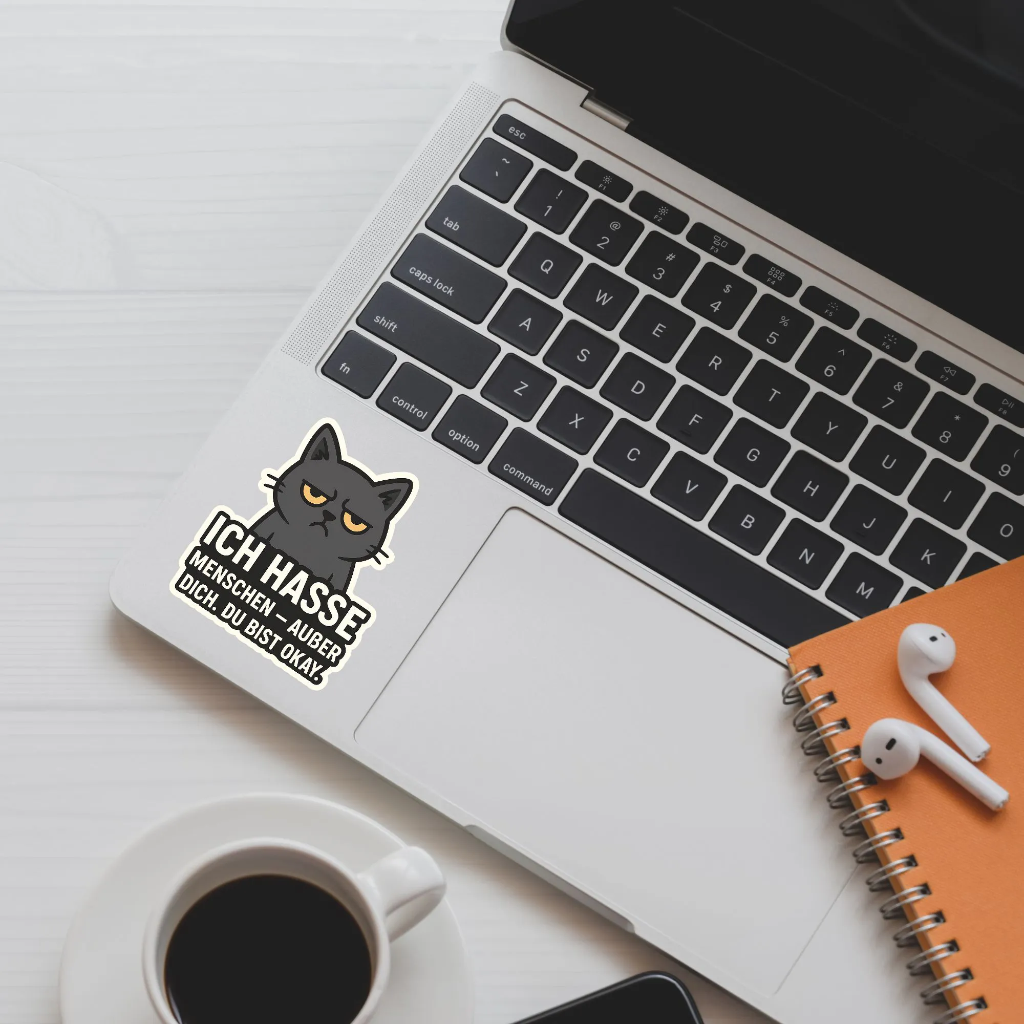 Dieser Sticker spricht aus, was viele denken. Mit dem charmanten Spruch "ICH HASSE MENSCHEN – AUẞER DICH. DU BIST OK." und einer herrlich grummeligen schwarzen Katze ist dieser Aufkleber das ultimative Zeichen von Zuneigung (auf sarkastische Art). Ein perfektes Geschenk für beste Freunde, introvertierte Seelenverwandte oder einfach als klares Statement für dich selbst.