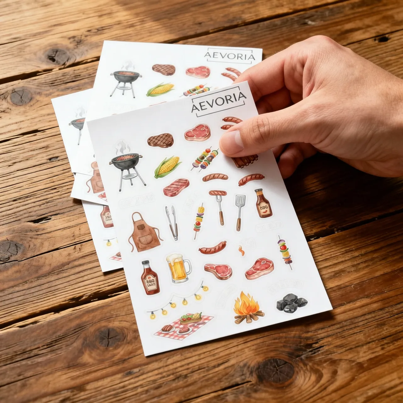 Eröffnen Sie die Grillsaison in Ihrem Kalender mit diesem deftigen BBQ Stickerbogen der Marke AEVORIA. Das perfekte Zubehör für alle Grillmeister, Fleischliebhaber und "Pitmasters", um Grillpartys zu planen, Rezeptbücher zu gestalten oder Einladungen zu verzieren.