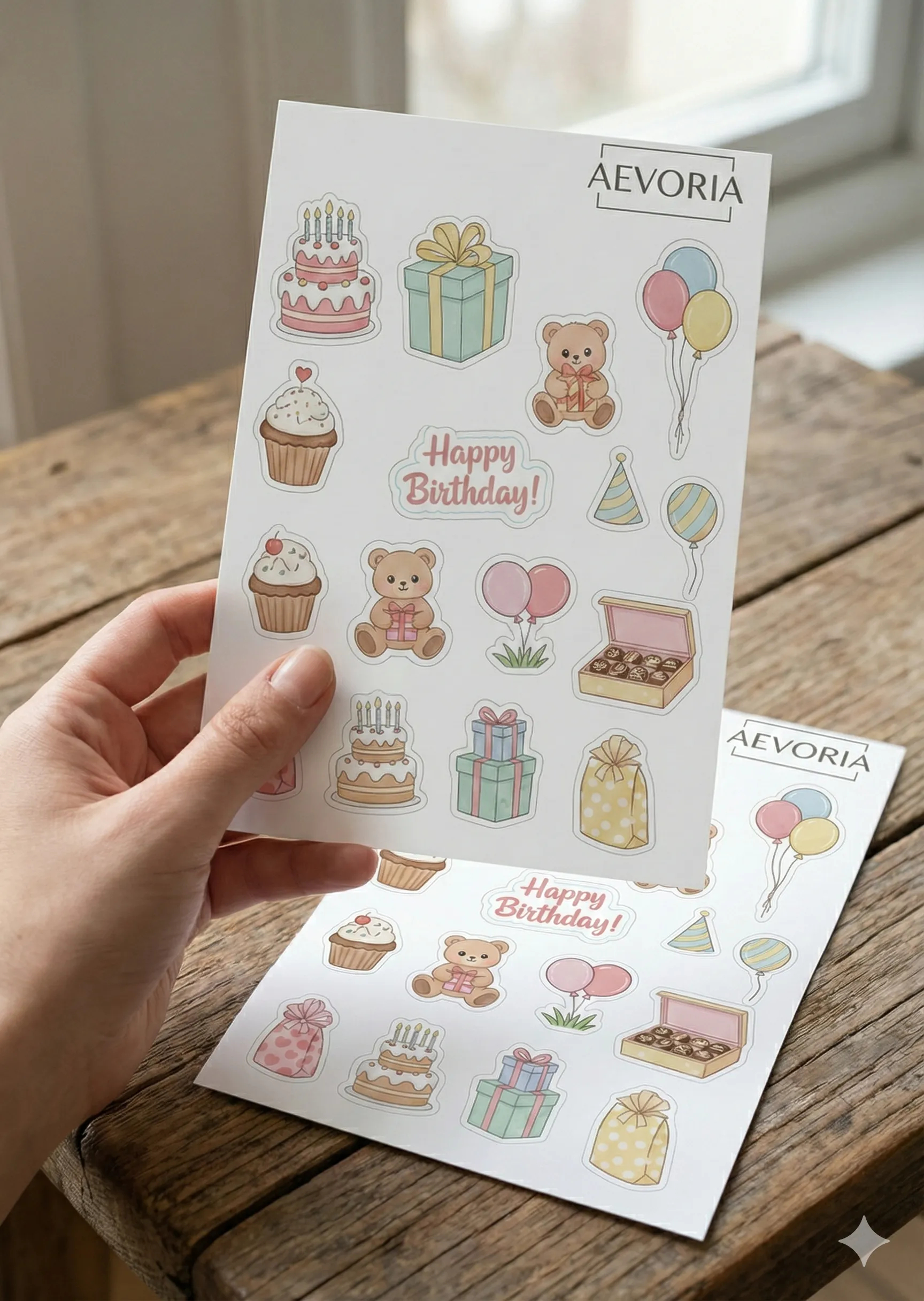 Mach jeden Geburtstag noch ein bisschen bunter und fröhlicher mit diesem entzückenden Stickerbogen im praktischen DIN A6 Format. Die liebevoll gestalteten Motive im Kawaii-Stil umfassen alles, was zu einer gelungenen Party gehört: Leckere Geburtstagstorten mit Kerzen, Cupcakes, bunte Geschenke, festliche Luftballons und süße Teddybären, die Geschenke überreichen.