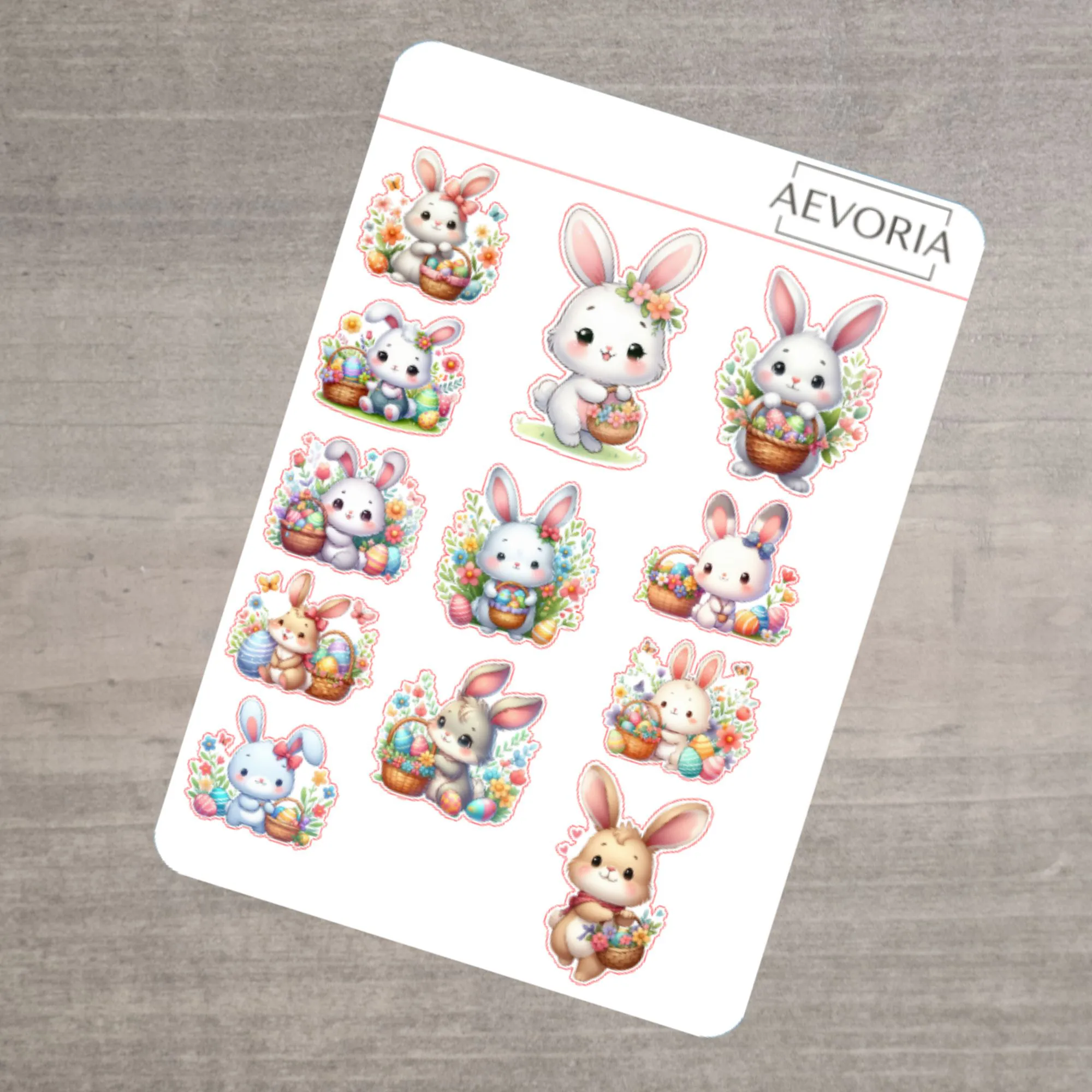 Dieser liebevoll gestaltete Stickerbogen im praktischen DIN A6 Format ist randvoll mit 11 verschiedenen, zuckersüßen Osterhasen-Motiven. Ob mit gefüllten Eierkörben, Blumenkränzen oder einfach nur niedlich dreinschauend – diese kleinen Hasen bringen sofort Frühlingsstimmung in dein Zuhause.