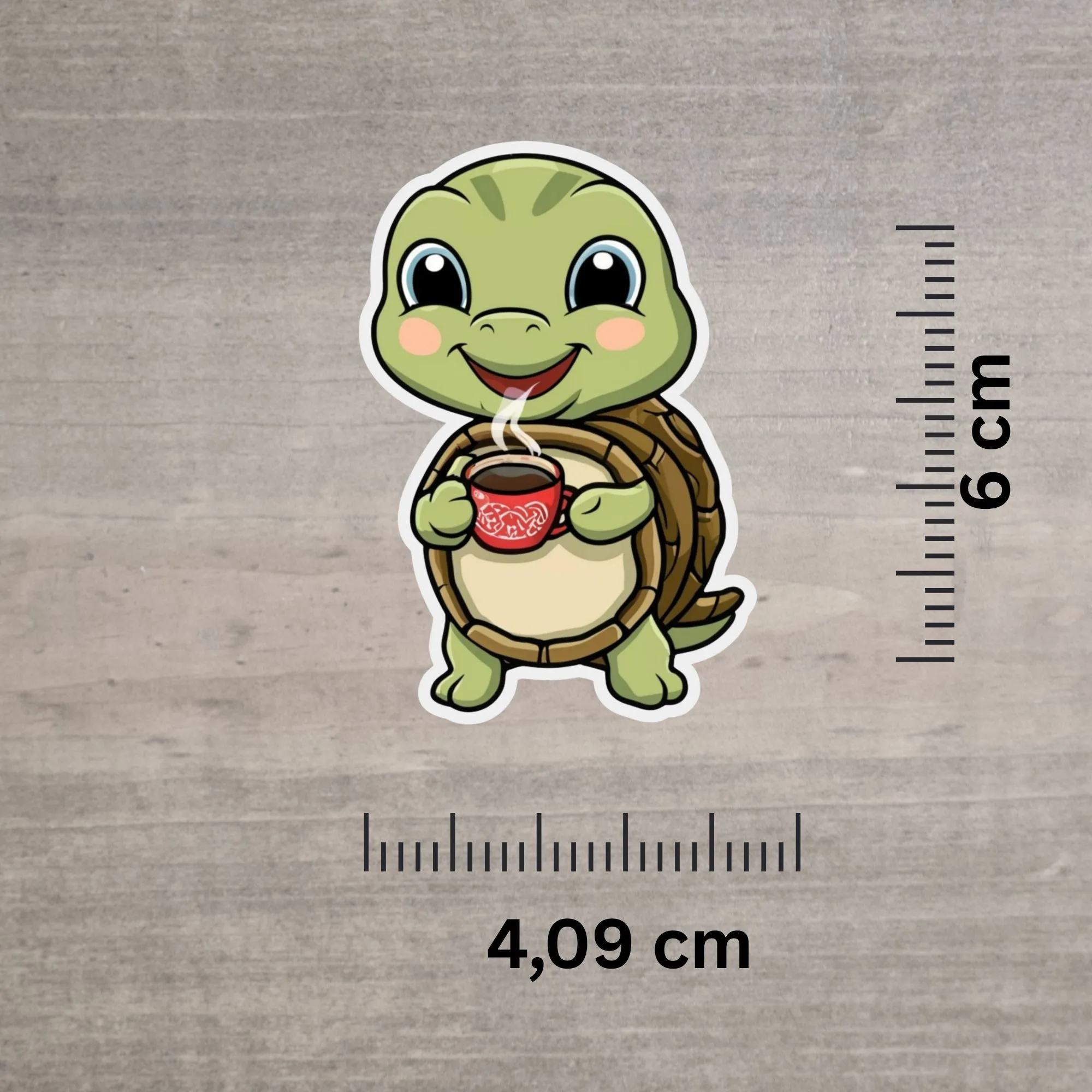 Dieser niedliche Schildkröten-Sticker ist das perfekte Motto für alle, die es morgens lieber gemütlich angehen lassen. Mit einem entspannten Lächeln und einer dampfenden roten Kaffeetasse in den Händen erinnert dich diese kleine Schildkröte daran, dass auch kleine Schritte (und große Schlucke Kaffee) ans Ziel führen.
